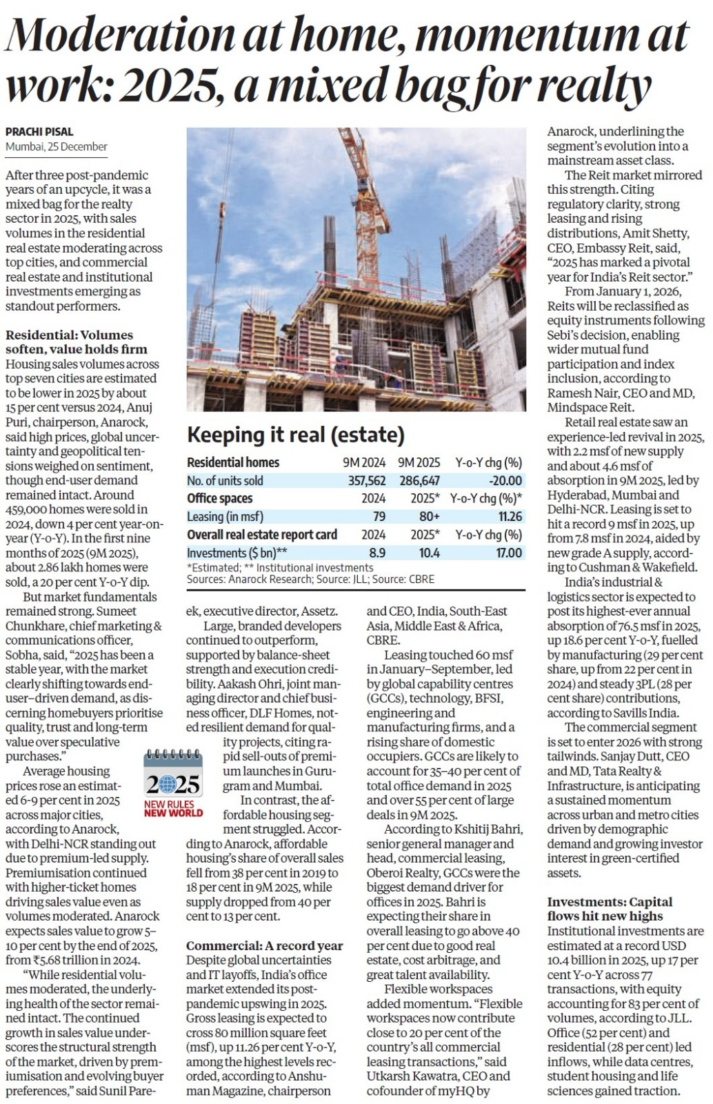 Moderation at home, momentum at work: 2025, a mixed bag for realty