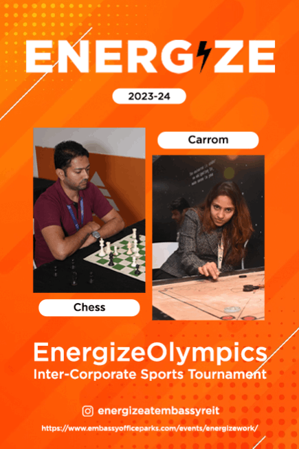EnergizeOlympics is an inter-corporate sports tournament featuring both indoor and outdoor sports. Chess and carrom are two of the most popular indoor sports. Sign up to bid your skills against your fellow park users and win some accolades for your company.
