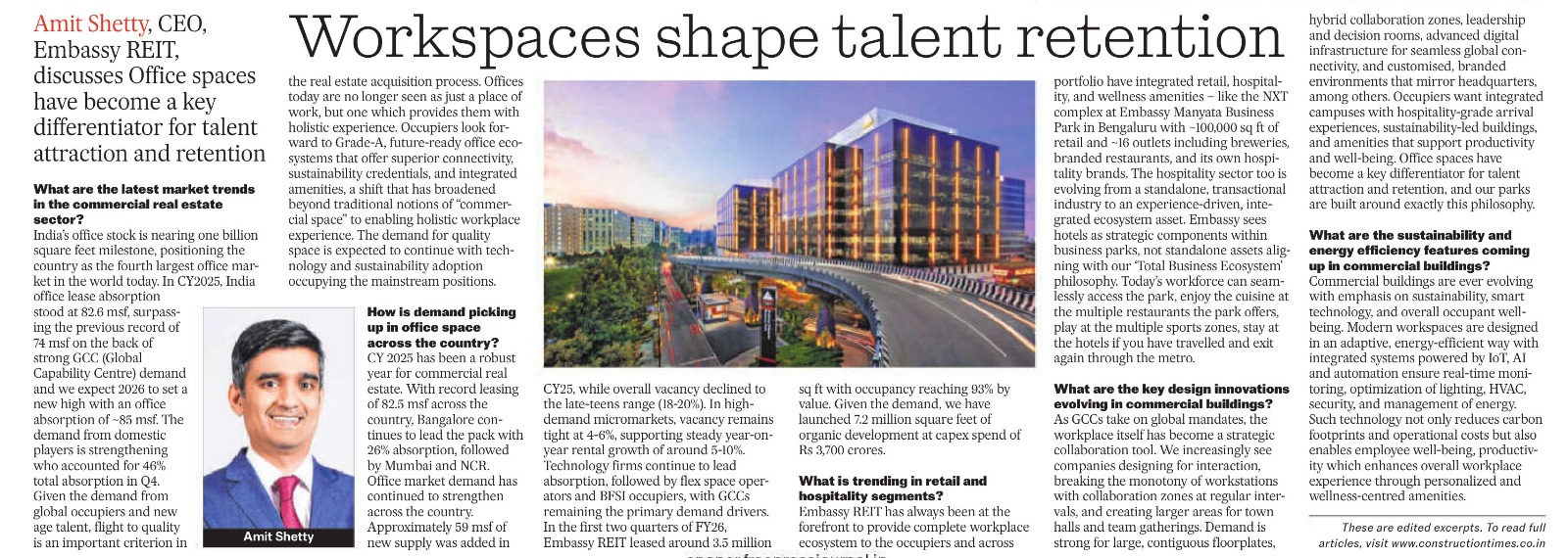 Data update as per latest quarterly results. Currently updated as of September 30, 2020 and excludes recently completed Embassy TechVillage Acquisition.
