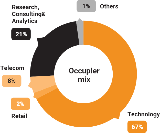 Embassy Quadron is a large hub of technology companies and among the most popular office locations in Pune. It is located in the West Pune submarket that has emerged among the most popular office locations in the city, and is well connected to Mumbai and Central Pune.